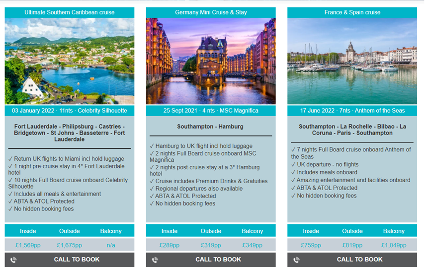 Take advantage of our direct net cruise rates, allowing you to provide an even greater choice of Cruise Only, Fly-Cruise and Cruise & Stay options matched with unrivalled value, ensuring your cruise offering has a competitive edge.
